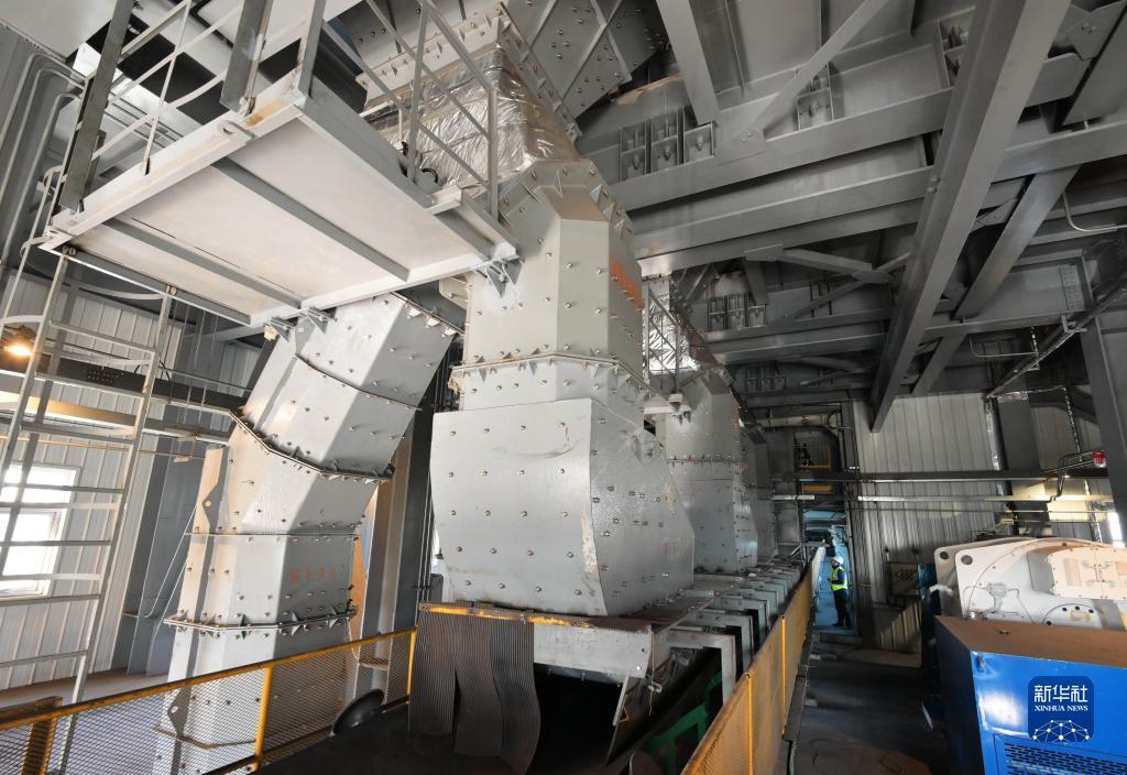 11月12日,工人在唐山海港經濟開發區管帶機水箱水廊道轉接機房檢查礦石輸送情況。